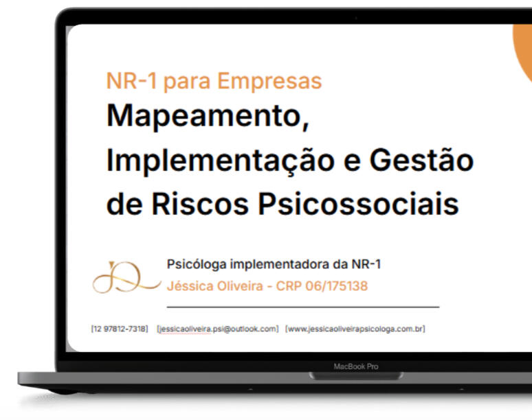 Saúde mental no ambiente corporativo já é uma realidade e desde agosto de 2024 deixou de ser uma escolha; agora é lei.As organizações têm até maio de 2026 para se adequar ao mapeamento e à implementação dos riscos psicossociais.Como psicóloga e implementadora certificada da NR-1, conduzo esse processo com rigor técnico, sensibilidade estratégica, alinhamento às necessidades da sua empresa e ferramentas de gestão que tornam a implementação clara e visual.